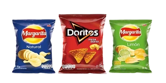 Paquete de papitas Margarita Natural 30g, Paquete de papitas Margarita Limón 30g,